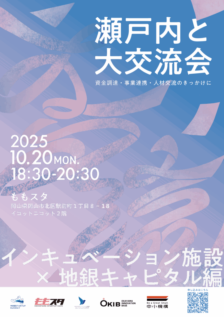 この度、2025年10月20日(月)に合同イベント「瀬戸内と大交流会 〜インキュベーション施設 × 地銀キャピタル編~」を開催いたします。